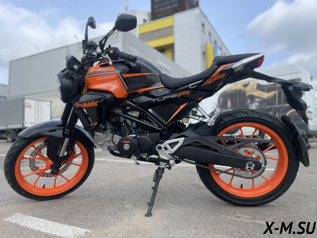 Рама мотоцикла PROMAX CB150R (49) сделана на базе новейше модели мопеды HONDA – самая надежнейшая рама c увеличенной допустимой нагрузкой в 250кг! Рама выполнена из CR-MO (хромолибден) стали, покрыта раптором! Максимальный запас прочности и защиты от коррозии! Держит раму на себе подвеска перевернутого типа спереди и моноамортизатор сзади от KKE, с возможностью тончайшей настройки для ваших задач и целей! В таком сочетании люфты подвески отсутствуют – при резком страгивании с места мотоцикл не рыщет, стоит ровно, уверенно!