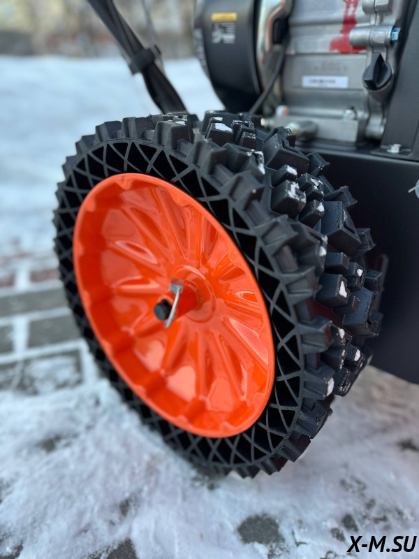 Максимальная дальность выброса снега до 15 метров.